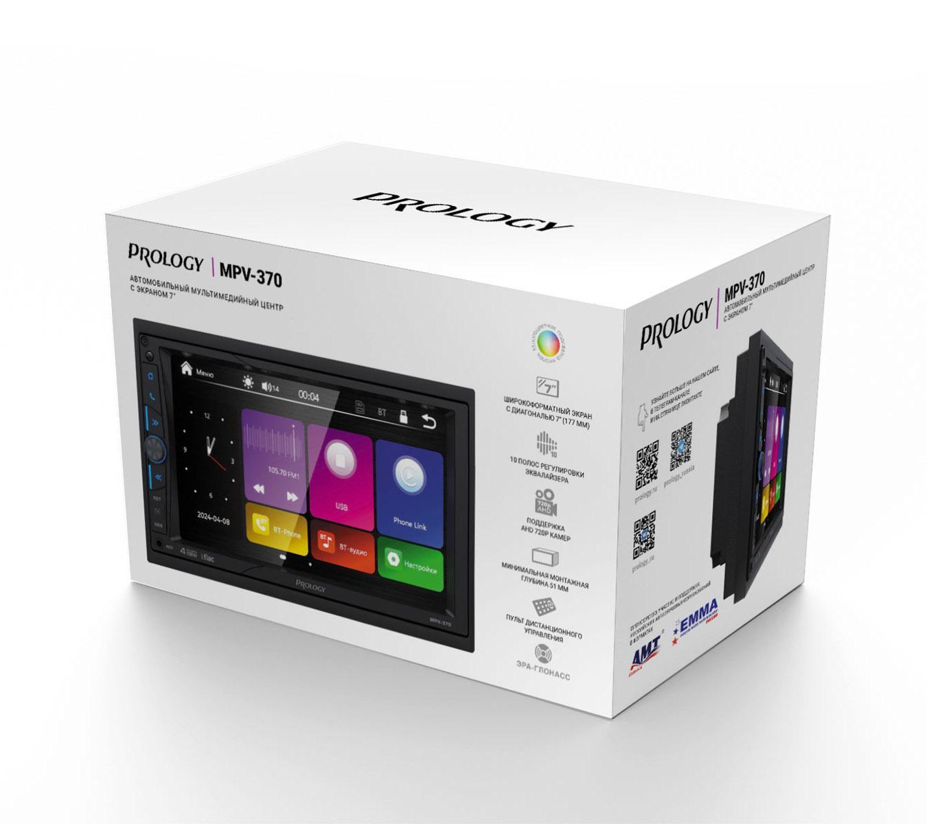 Автомобильный мультимедийный центр PROLOGY MPV-370 монтажного размера 2DIN обеспечивает прием радиостанций в диапазонах FM / УКВ, воспроизведение медиафайлов, записанных на карты памяти USB / microSD, передачу сигнала с внешних источников, а также управление мобильным телефоном через интерфейс Bluetooth (version 4.2).
